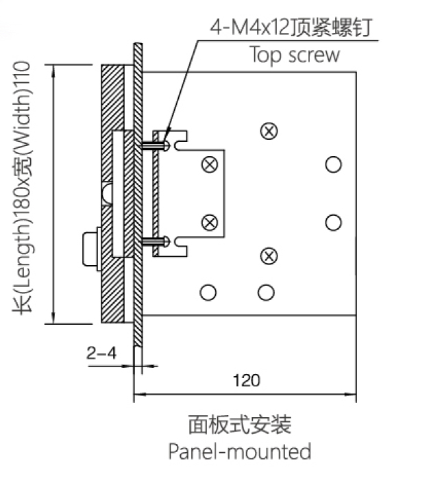 5、4-M4×12頂緊螺釘在面板上安裝,便于固定。