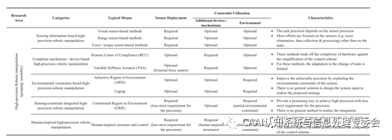 (1)基于傳感信息的方法(2)基于柔性機構的方法(3)基于環境約束的方法 (4)基于感知約束集成的方法(5)仿生的方法 1、基于感知信息的高精度機器人操控方法 典型的用于機器人操控任務的傳感器主要包括視覺傳感器、距離傳感器和力/扭矩傳感器,如圖2所示。